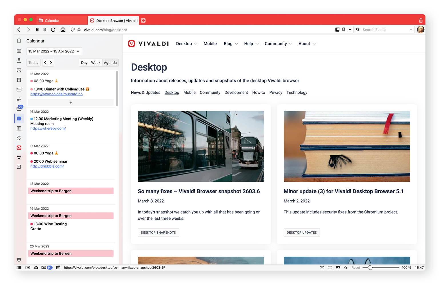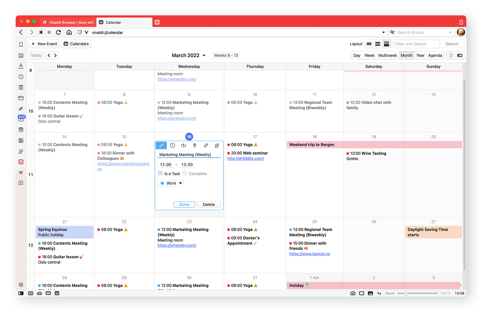 A Vivaldi Naptár egy rugalmas és mélyen integrált módja az események böngészőben kezelésének.