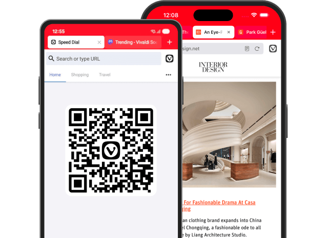 Navigazione mobile senza impedimenti alle tue condizioni. Vivaldi su dispositivi mobili è ricco di funzioni utili tra cui il blocco annunci e protezione traccianti integrati. Puoi sincronizzare perfettamente schede aperte, accessi salvati e note col compagno Vivaldi su desktop.