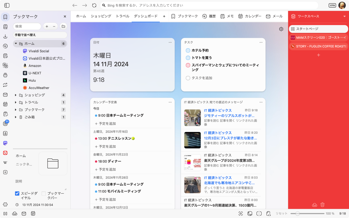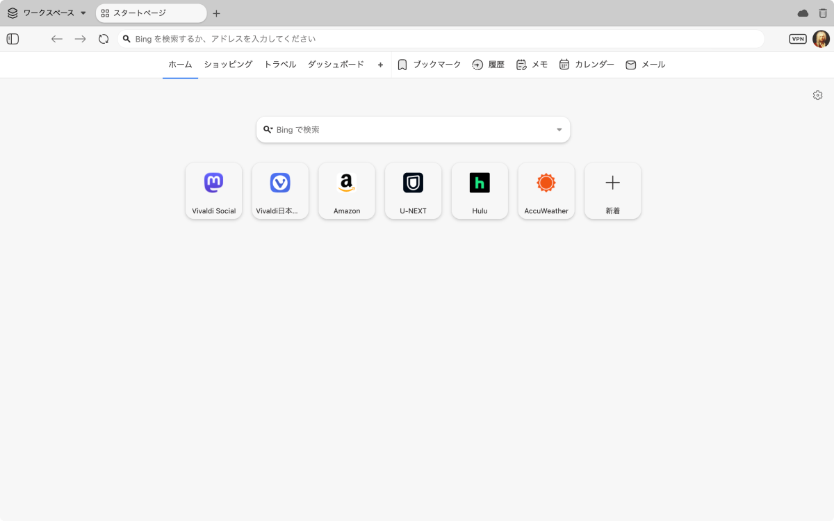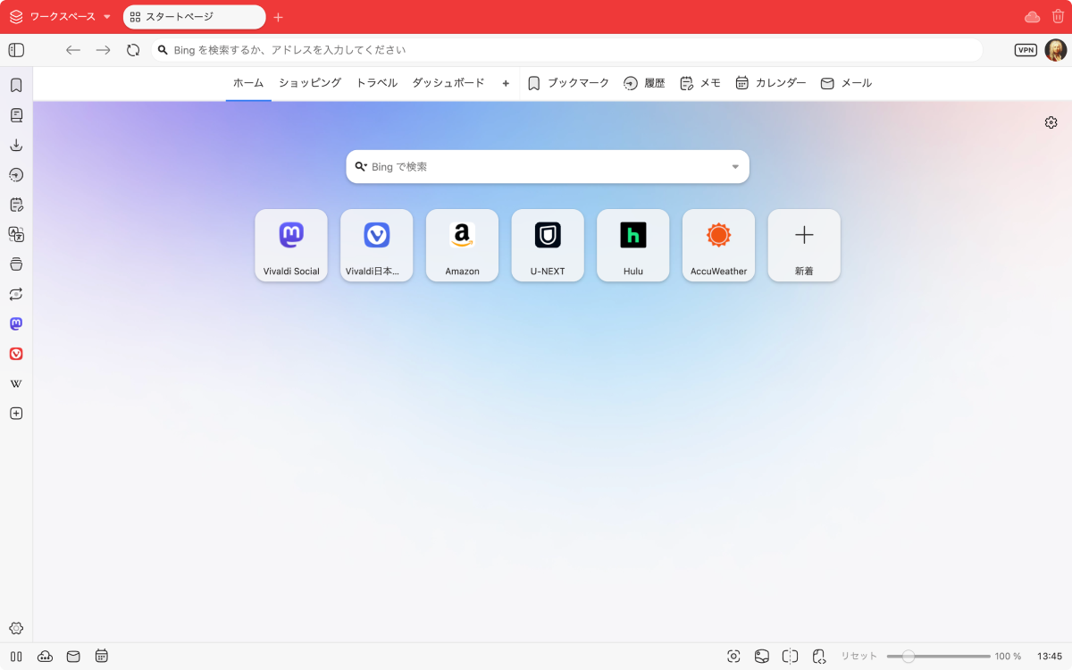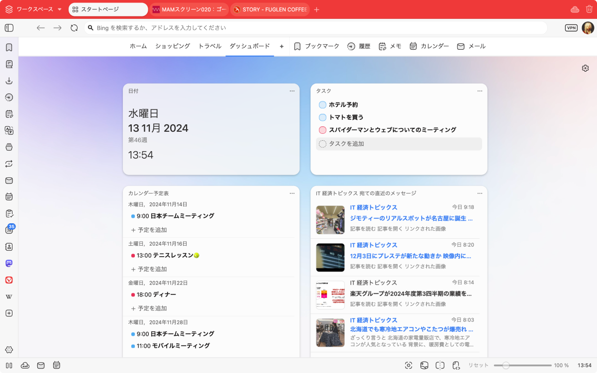 Vivaldi のダッシュボード機能いいなぁ