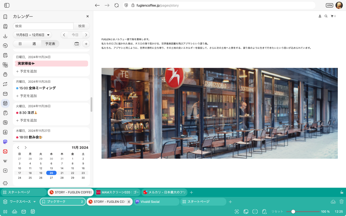 Vivaldi のお気に入りの機能、ウェブパネル。