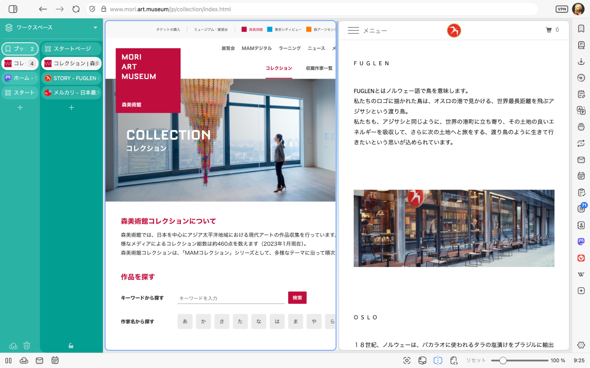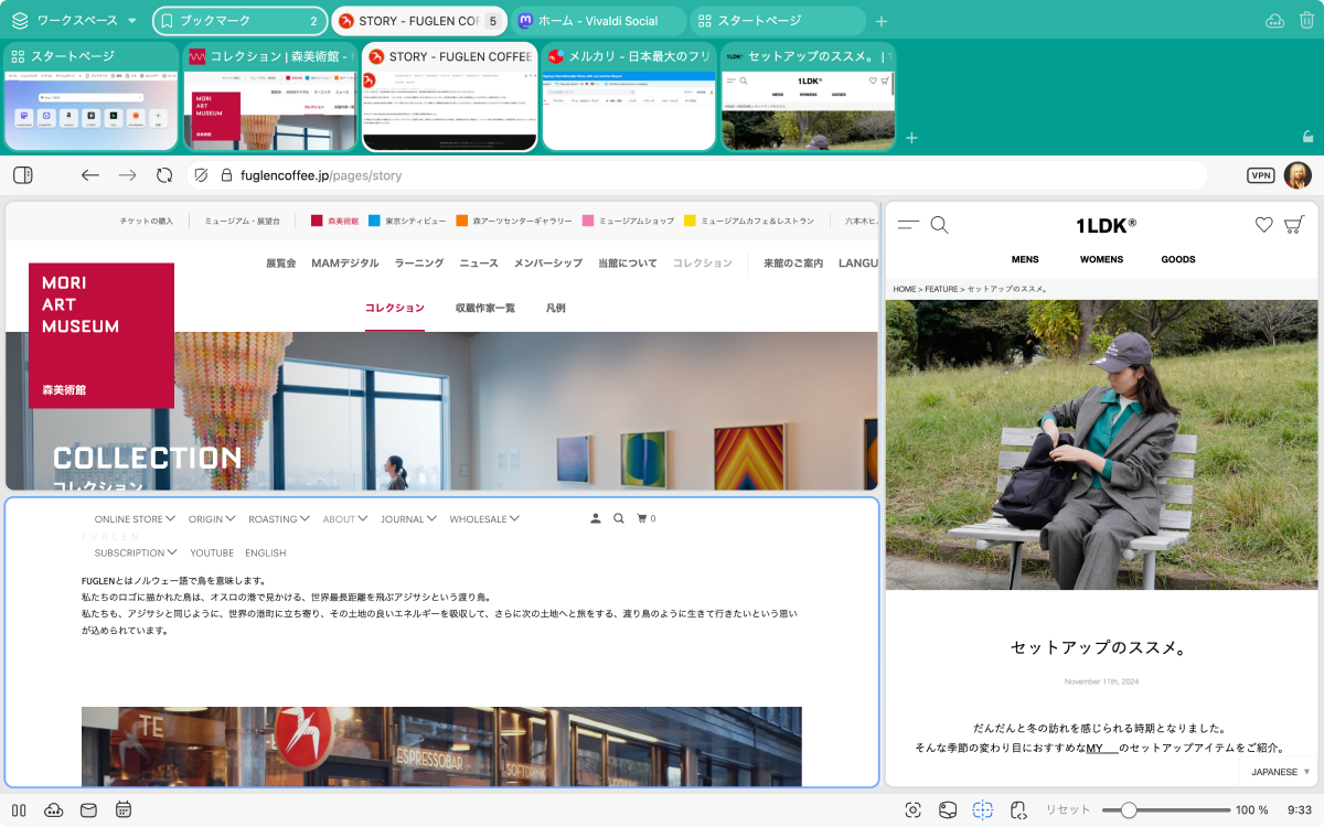 カスタマイズ性の高さとか細かすぎるほどの高機能っぷりとかあれこれあるけど、Vivaldi 使いの最大の理由はタブを縦に並べられること…(たくさん開いてても一覧性が高いし、PC の横長画面を有効に使える